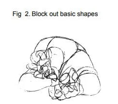 Step 2: Clean Core Structure (Block out basic shapes) You redraw it—this time focusing strictly on the clean, core shapes (Fig 2).