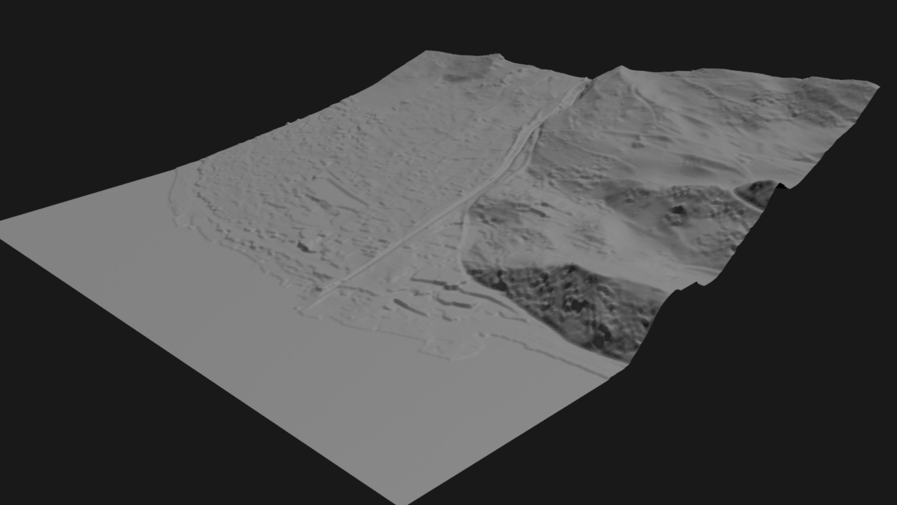 This image shows the terrain heightfield reconstructed from LiDAR data.